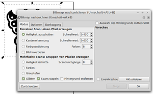 3. Über Pfad|Bitmap nachzeichnen (Shift+Alt+B) die Umwandlung der Grafik auslösen