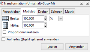 Jetzt öffnet sich wieder auf der rechten Seite ein Dialogfenster. In dem könnt ihr nun das Objekt skalieren, drehen und sonst noch ein paar Sachen damit machen.