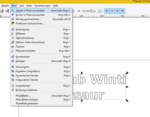 Jetzt wandeln wir den Schriftzug auch gleich wieder in einen Pfad um.