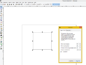 Nun wählen wir die Hatch-Fill Erweiterung an, die wir soeben installiert haben. Ein neuer Dialog öffnet sich. Als gute Werte haben sich die folgenden herausgestellt: