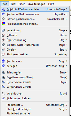 Das geht einfach, indem ihr das Objekt markiert und im Menü „Pfad“ den Punkt „Objekt in Pfad umwandeln“ wählt.